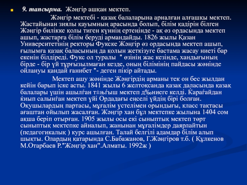9. тапсырма. Жәңгір ашқан мектеп.