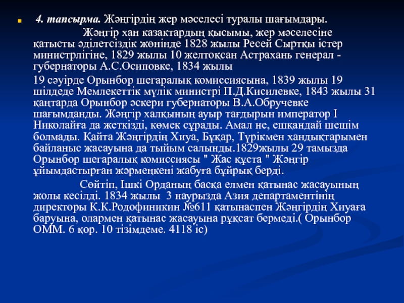 4. тапсырма. Жәңгірдің жер мәселесі туралы шағымдары.