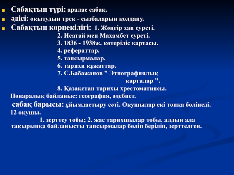 Сабақтың көрнекілігі: 1.