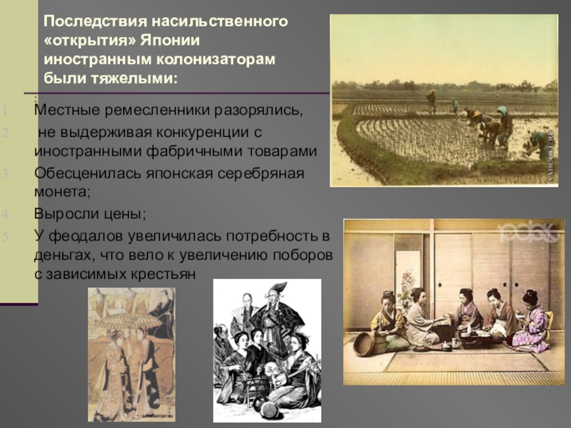 Даймё Юго –Запада Японии ,используя недовольство самураев(военное сословие), крестьянства, ремесленников ,подняли восстание с требованием создания сильной централизованной власти, захватив древнюю столицу Киото .