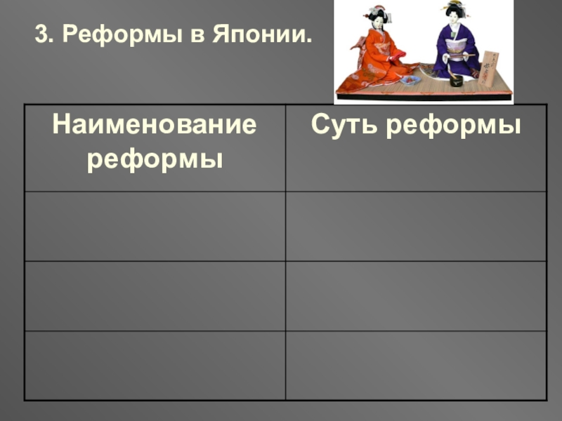 4.Изучить реформы в Японии.