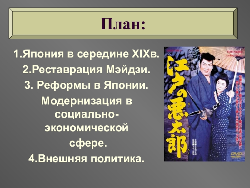 1.Узнать ,какой была Япония в середине XIXвека.