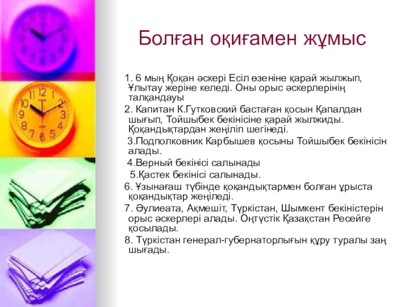 Болған оқиғамен жұмыс  1. 6 мың Қоқан әскері Есіл өзеніне қарай жылжып, Ұлытау жеріне келеді. Оны