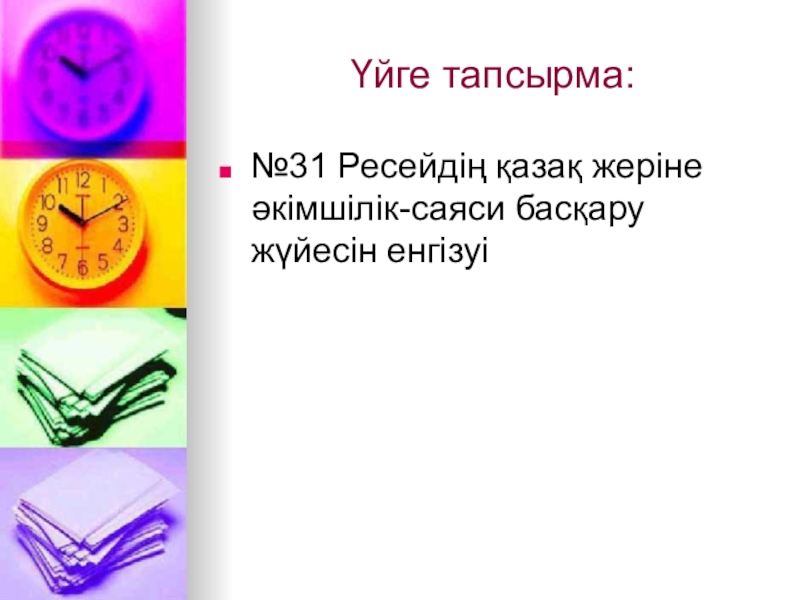 Үйге тапсырма:№31 Ресейдің қазақ жеріне әкімшілік-саяси басқару жүйесін енгізуі