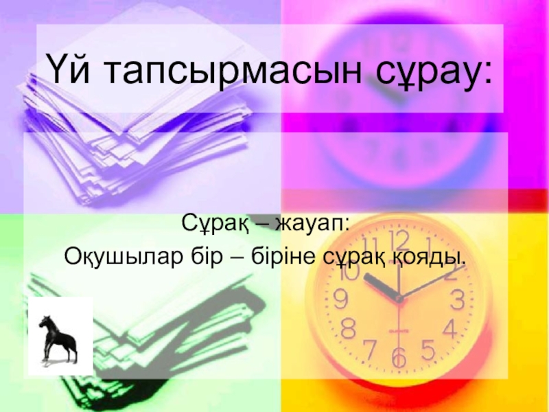 Үй тапсырмасын сұрау:Сұрақ – жауап:Оқушылар бір – біріне сұрақ қояды.
