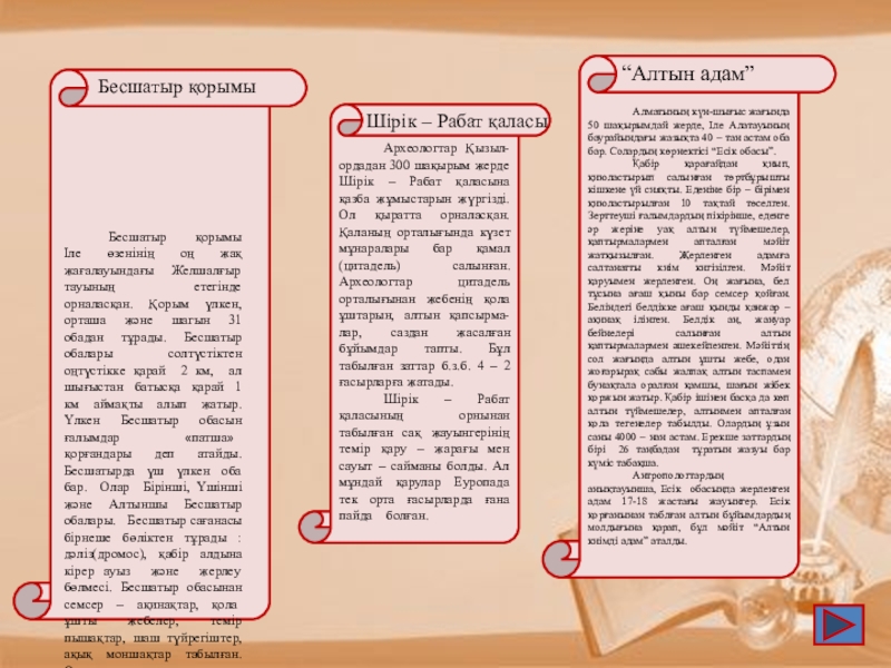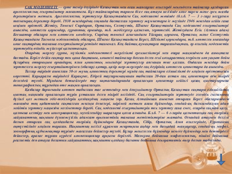 Алматының күн-шығыс жағында 50 шақырымдай жерде, Іле Алатауының баурайындағы жазықта 40 – тан астам оба бар. Солардың көрнектісі “Есік обасы”.