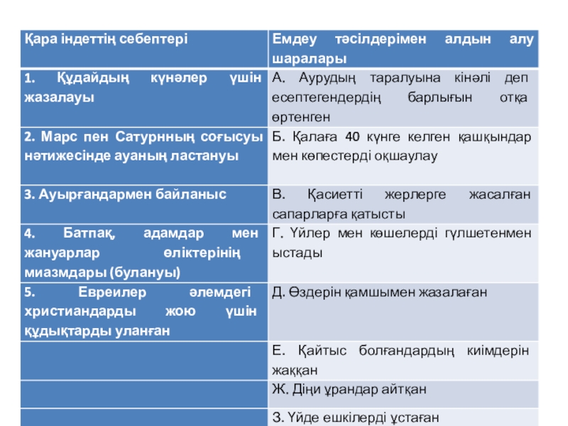 Келесі ақпаратты шығара алады: Қара індеттің себептері мен салдары