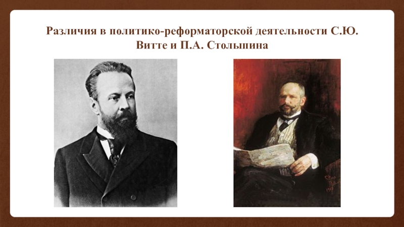 Слайд 8Различия в политико-реформаторской деятельности С.Ю.Витте и П.А. Столыпина