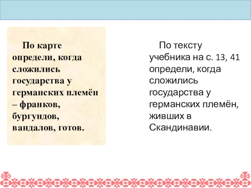 По тексту учебника на с. 13, 41 определи, когда сложились государства у германских племён, живших в Скандинавии.