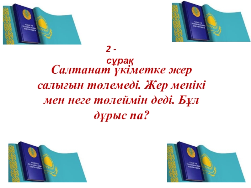 2 -сұрақСалтанат үкіметке жер салығын төлемеді. Жер менікі мен неге төлеймін деді. Бұл дұрыс па?