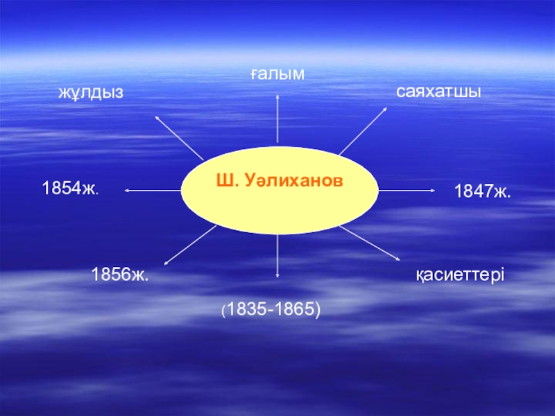 Ш. Уәлиханов  ғалымсаяхатшы(1835-1865)1847ж.1854ж.1856ж. қасиеттеріжұлдыз