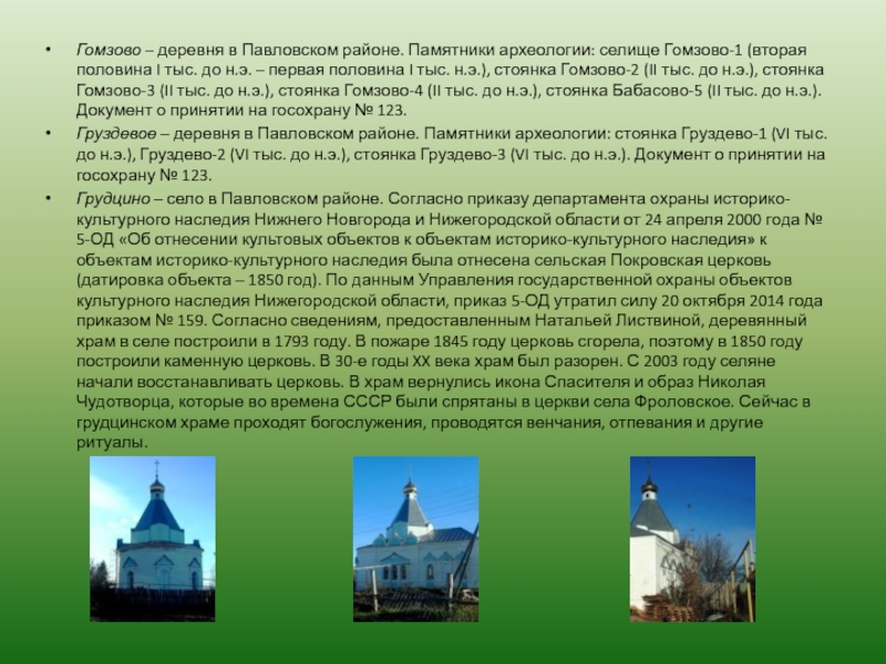 Слайд 12Гомзово – деревня в Павловском районе. Памятники археологии: селище Гомзово-1 (вторая половина