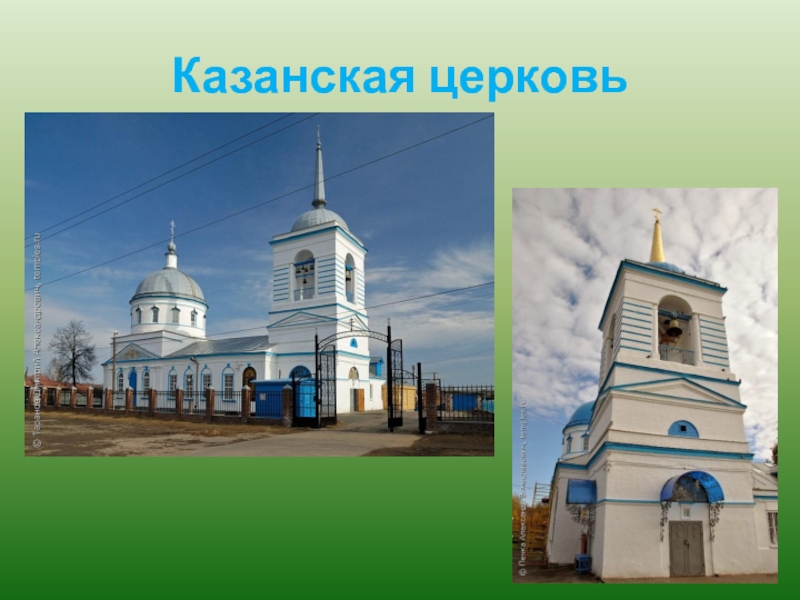 Памятник градостроительства и архитектуры: Казанская церковь (ул. Ленина, 1823 год, документ о принятии на госохрану № 471).