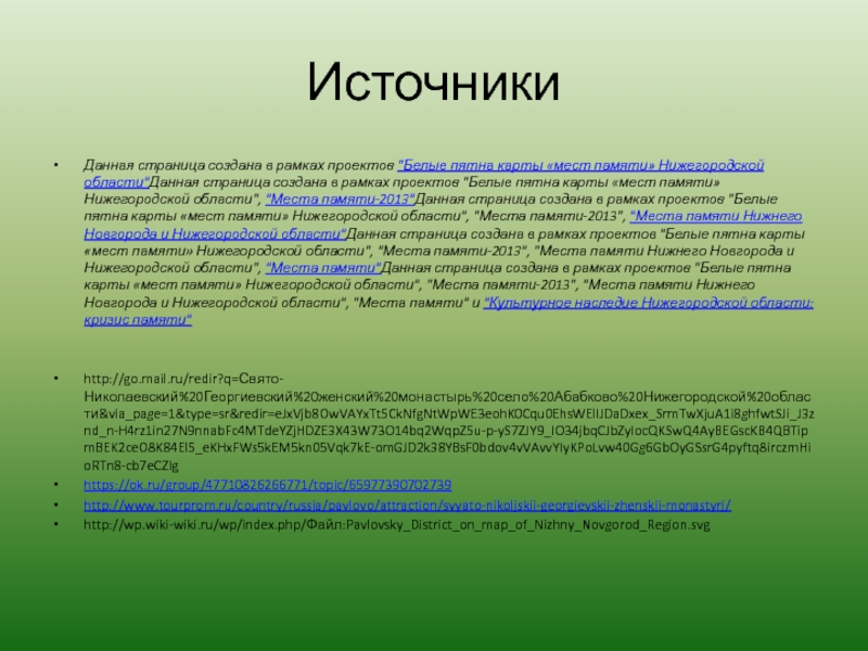 Данная страница создана в рамках проектов "Белые пятна карты «мест памяти» Нижегородской области"Данная