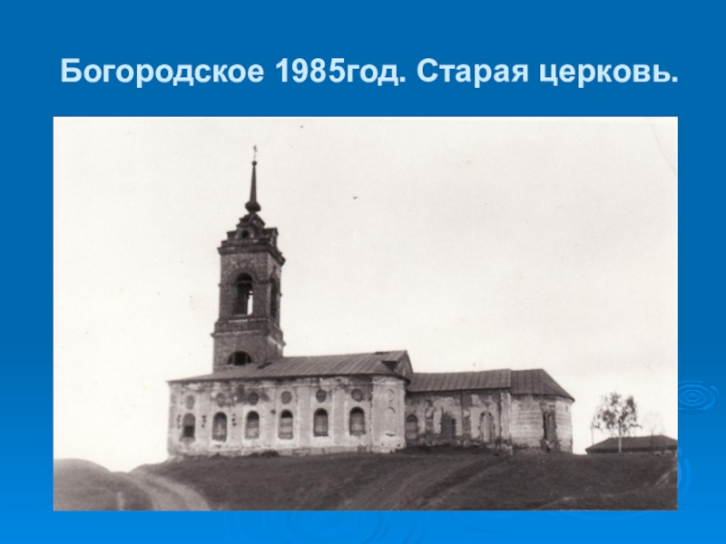 Слайд 29Богородское 1985год. Старая церковь.
