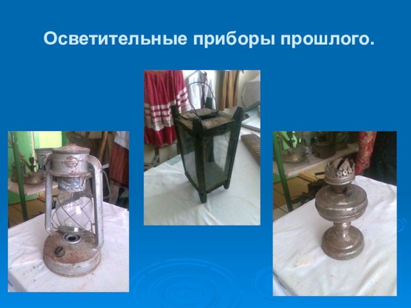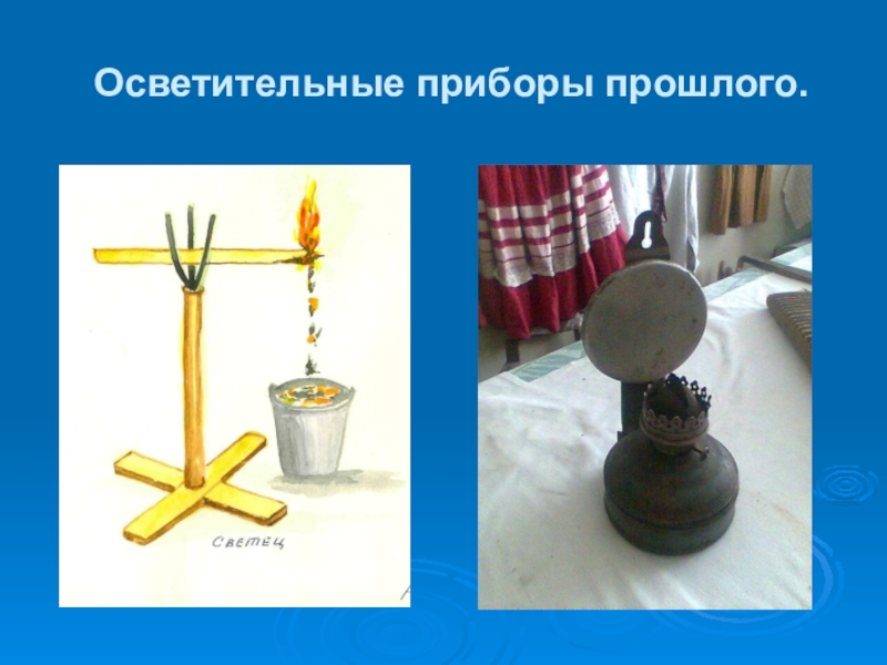 Слайд 14Осветительные приборы прошлого.