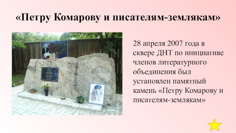 инициативе членов литературного объединения был установлен памятный камень «Петру Комарову и писателям-землякам»