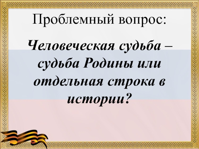 Проблемный вопрос:Человеческая судьба – судьба Родины или отдельная строка в истории?