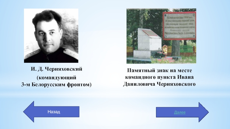 Памятный знак на месте командного пункта Ивана Даниловича Черняховского