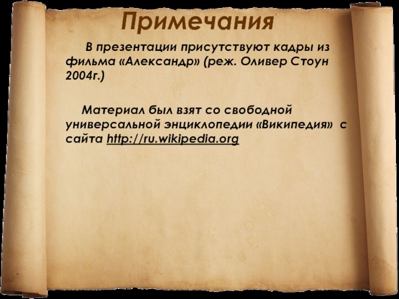 В презентации присутствуют кадры из фильма «Александр» (реж. Оливер Стоун 2004г.)