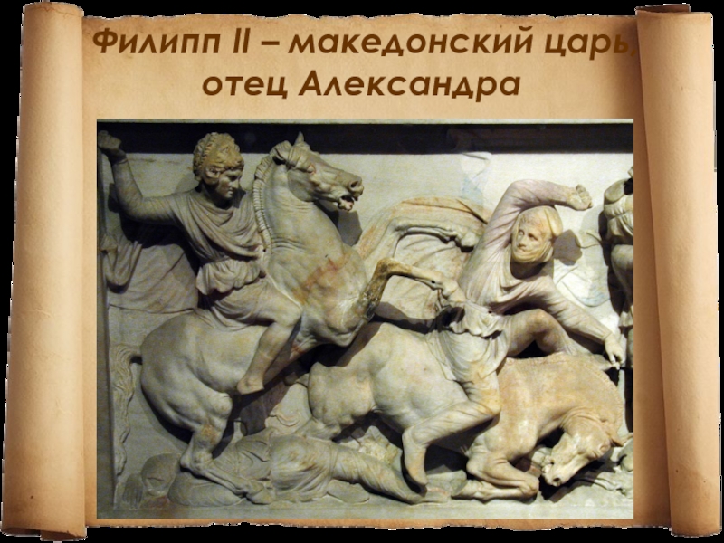 Слайд 6 Филипп II – македонский царь, отец Александра