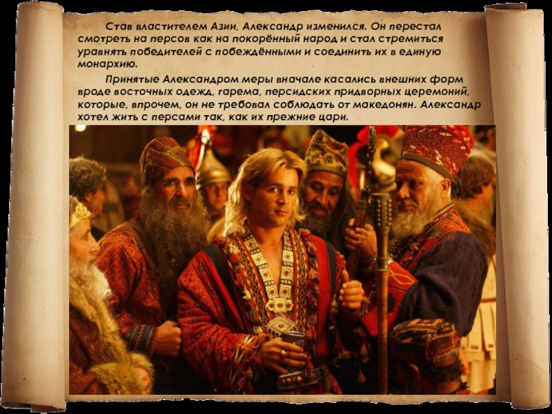 Слайд 30Став властителем Азии, Александр изменился. Он перестал смотреть на персов как