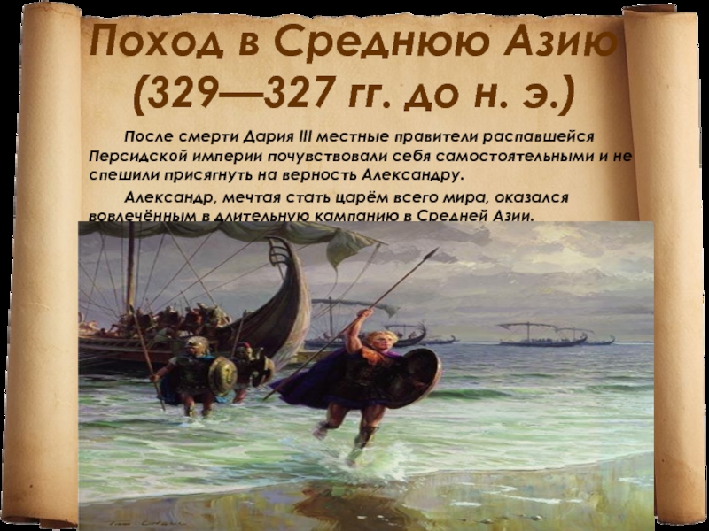 Слайд 31Поход в Среднюю Азию (329—327 гг. до н. э.)