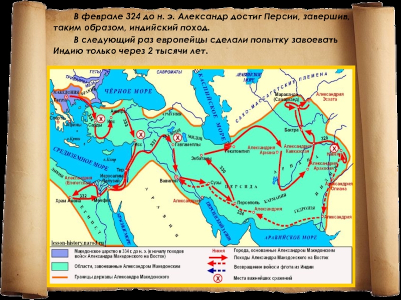 Слайд 38В феврале 324 до н. э. Александр достиг Персии, завершив, таким