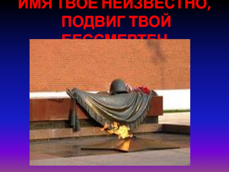 Слайд 15ИМЯ ТВОЕ НЕИЗВЕСТНО, ПОДВИГ ТВОЙ БЕССМЕРТЕН