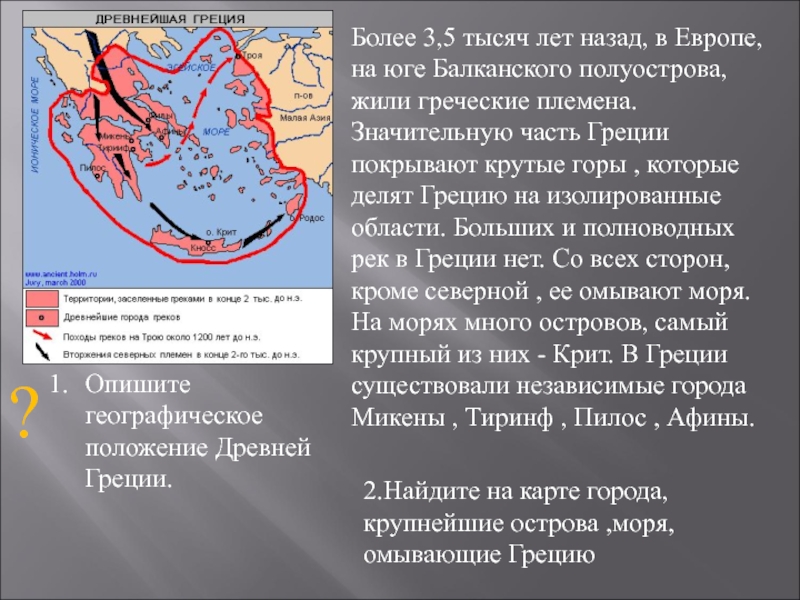 2.Найдите на карте города, крупнейшие острова ,моря, омывающие Грецию