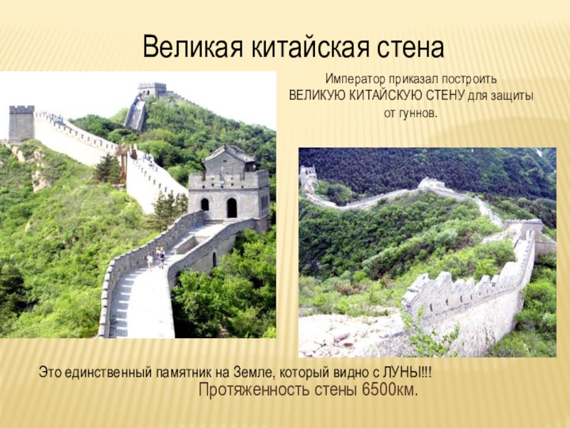 ВЕЛИКУЮ КИТАЙСКУЮ СТЕНУ для защиты от гуннов.