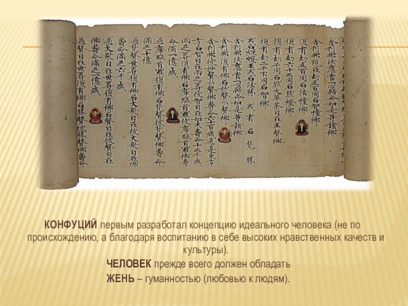 Слайд 17 КОНФУЦИЙ первым разработал концепцию идеального человека (не по происхождению,