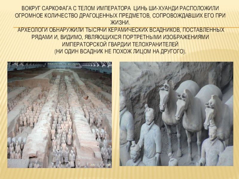 археологи обнаружили тысячи керамических всадников, поставленных рядами и, видимо, являющихся портретными изображениями императорской гвардии телохранителей