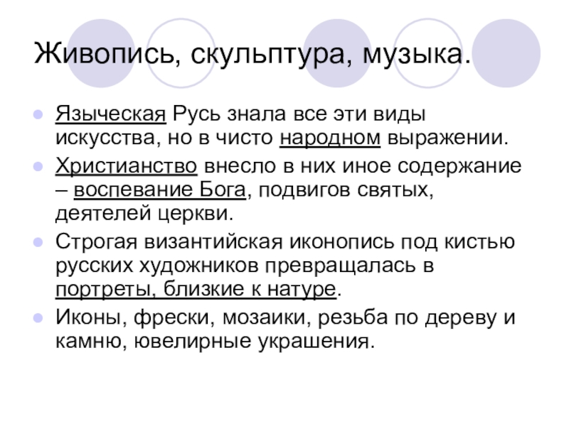 Христианство внесло в них иное содержание – воспевание Бога, подвигов святых, деятелей церкви.