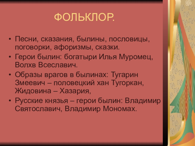 Образы врагов в былинах: Тугарин Змеевич – половецкий хан Тугоркан, Жидовина – Хазария,