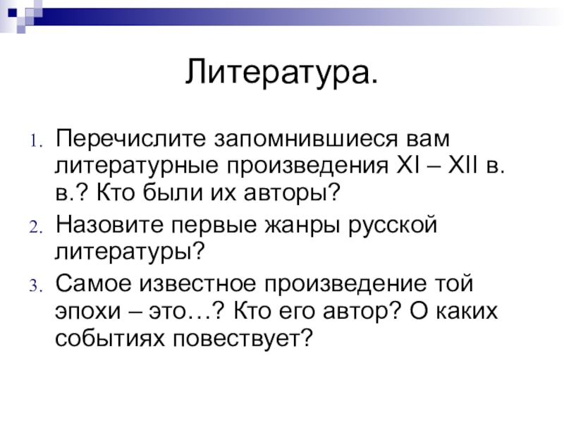 Перечислите запомнившиеся вам литературные произведения XI – XII в.в.? Кто были