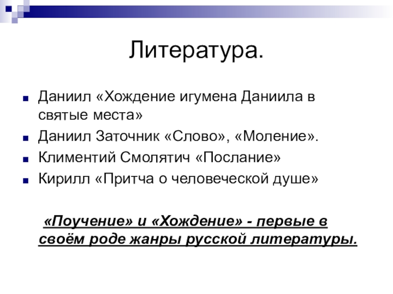 «Поучение» и «Хождение» - первые в своём роде жанры русской литературы.
