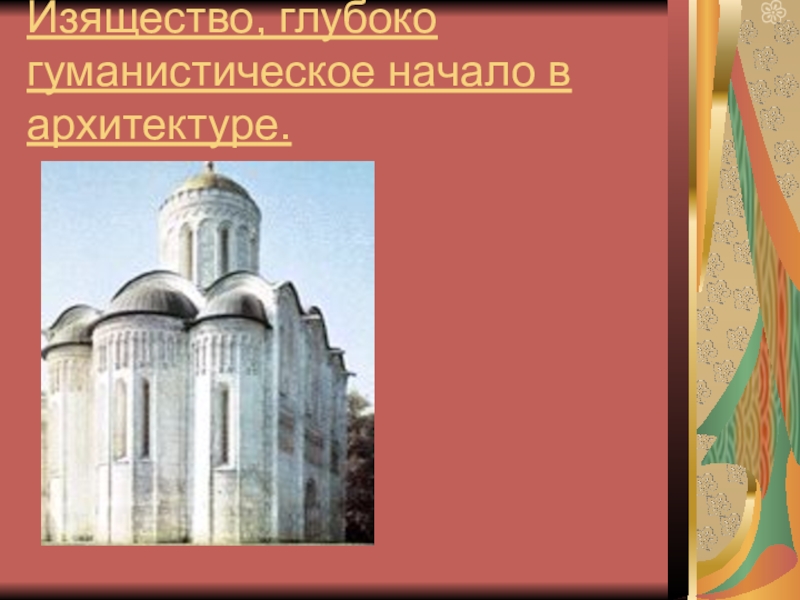 Слайд 6Изящество, глубоко гуманистическое начало в архитектуре.