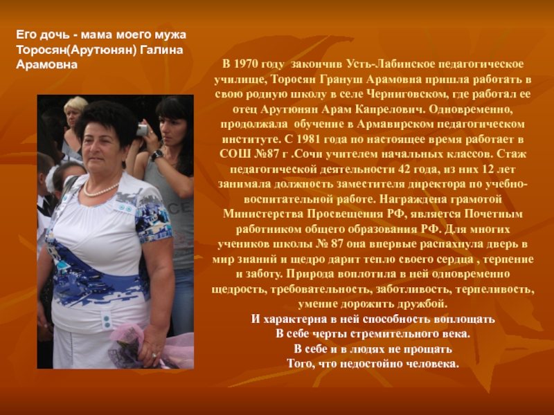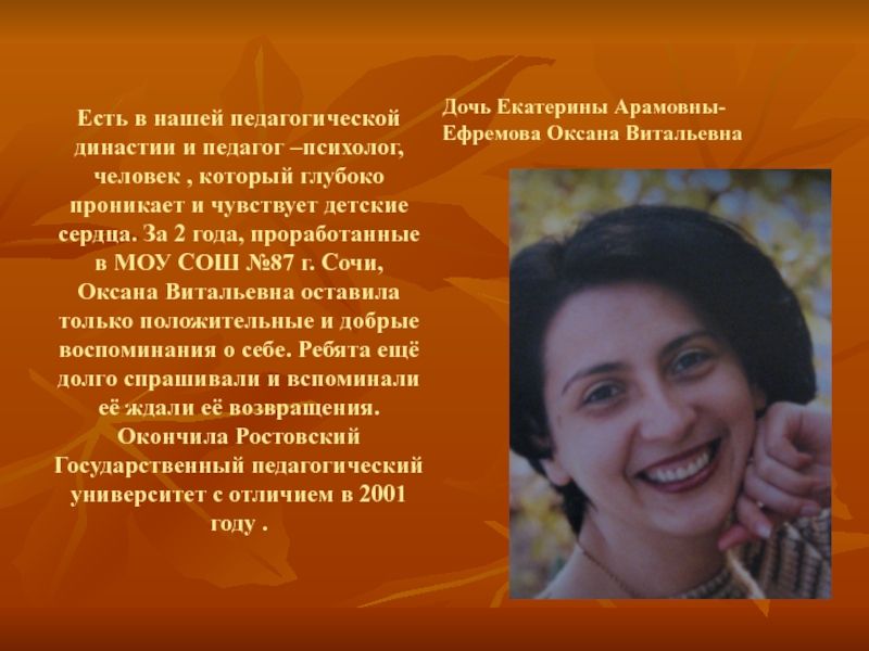 Дочь Екатерины Арамовны-Ефремова Оксана Витальевна