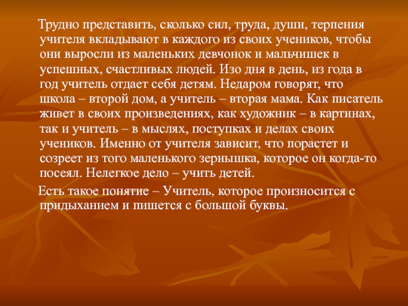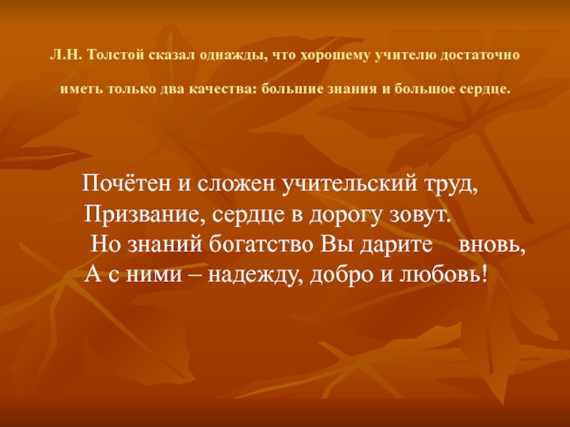 Почётен и сложен учительский труд, Призвание, сердце в дорогу зовут.