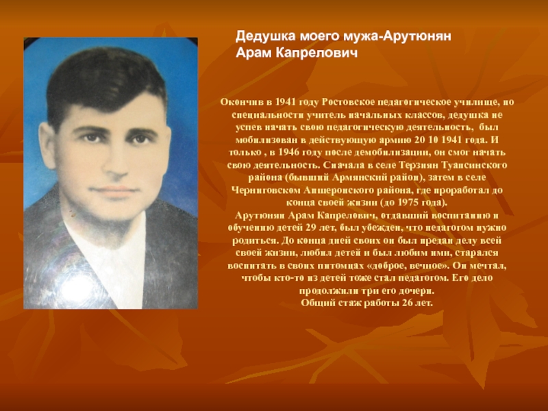 Дедушка моего мужа-Арутюнян Арам Капрелович