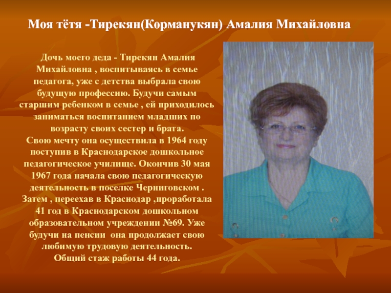 Моя тётя -Тирекян(Корманукян) Амалия Михайловна