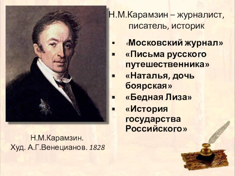 С 1804 года Карамзин начал работу над «Историей государства Российского», составление которой стало главным его занятием до конца жизни.