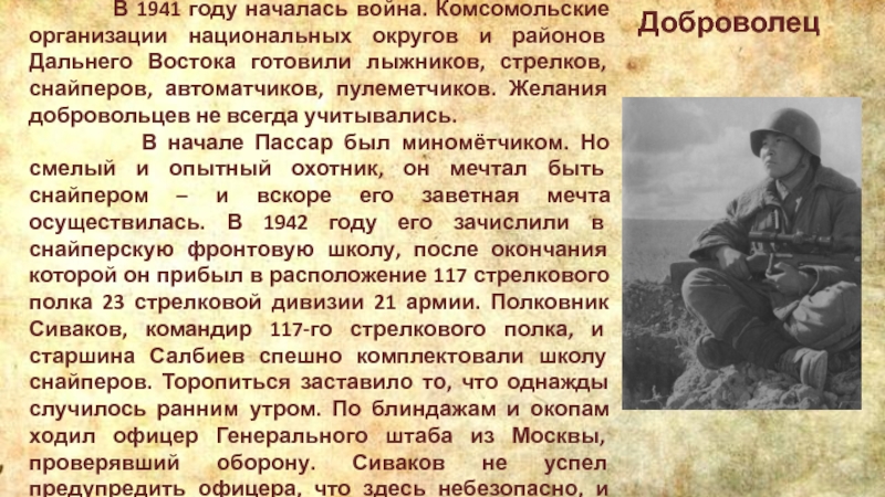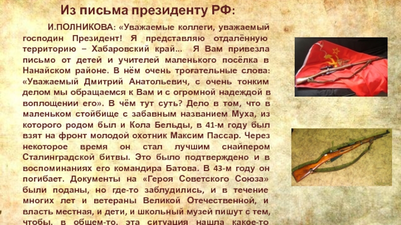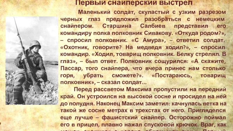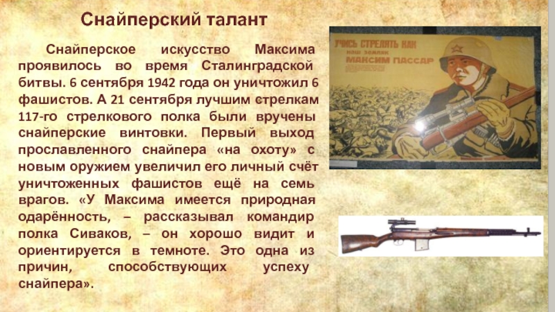 Снайперскую винтовку Максима взял его двоюродный брат Иннокентий.