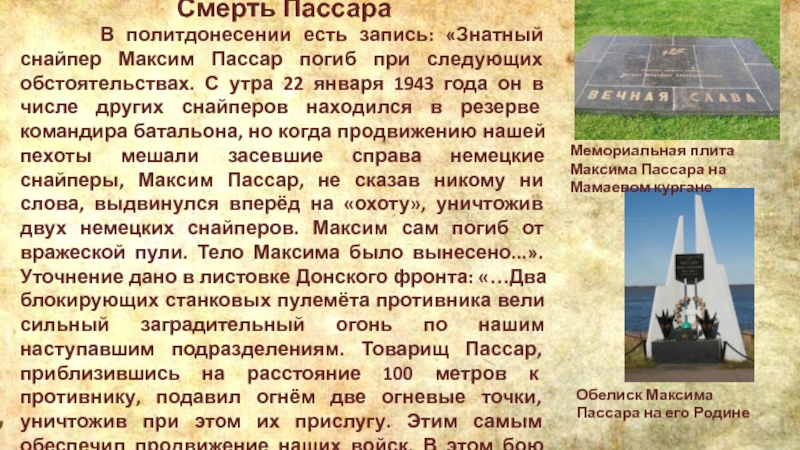 Мемориальная плита Максима Пассара на Мамаевом кургане