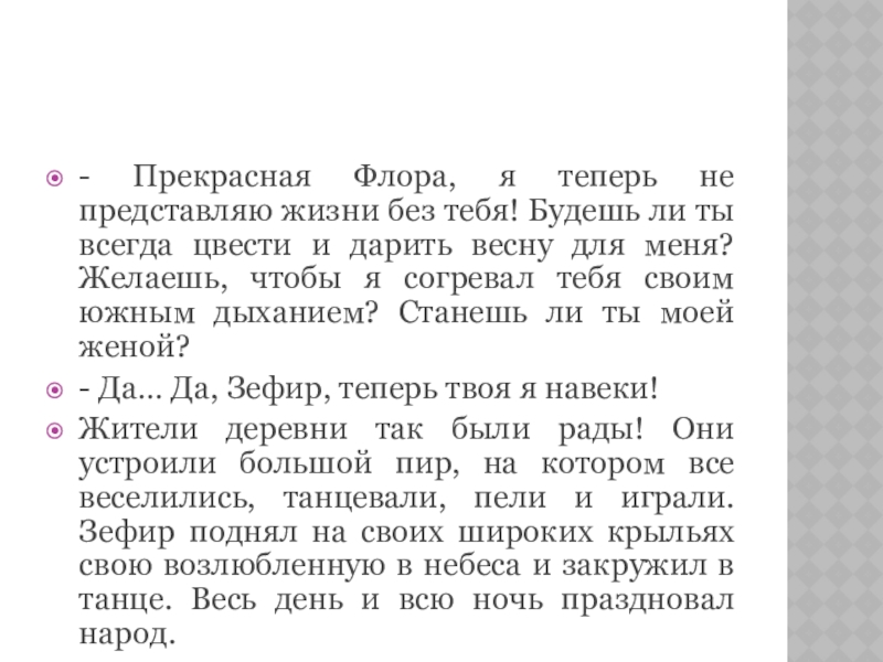 Слайд 8- Прекрасная Флора, я теперь не представляю жизни без тебя! Будешь