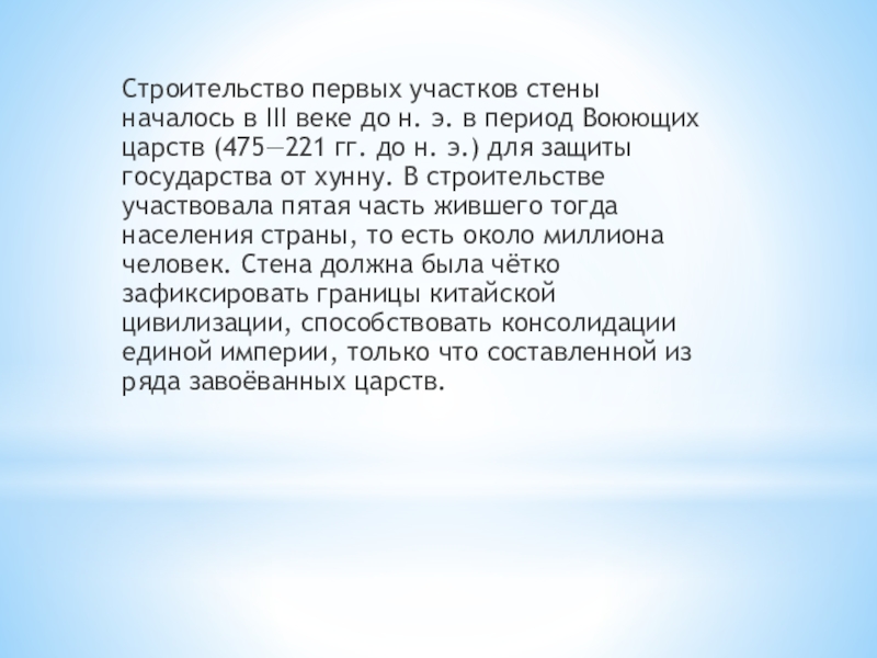 Слайд 3Строительство первых участков стены началось в III веке до н. э.