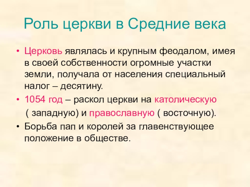 своей собственности огромные участки земли, получала от населения специальный налог – десятину.