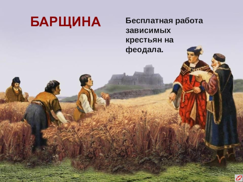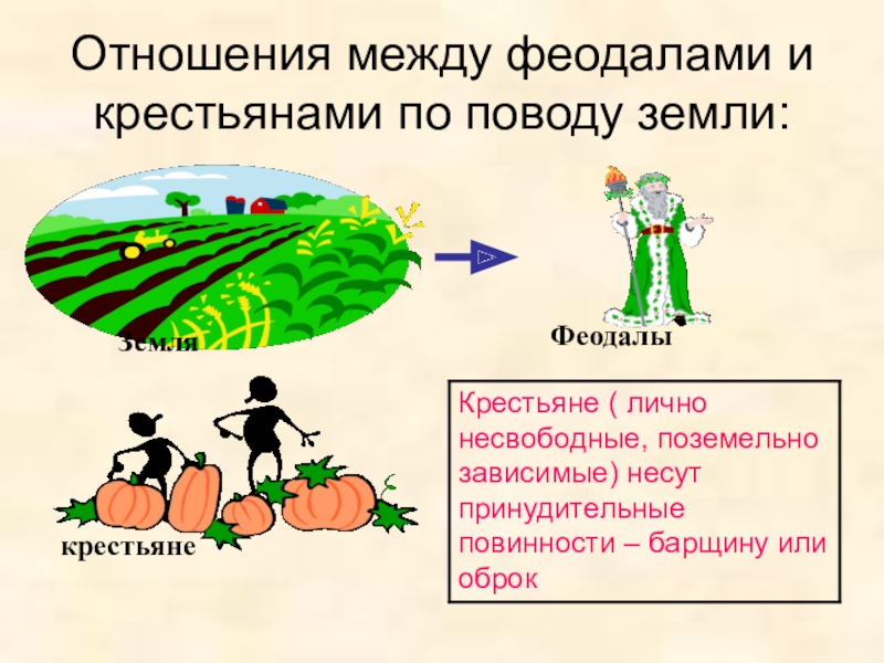 Слайд 6Отношения между феодалами и крестьянами по поводу земли:
