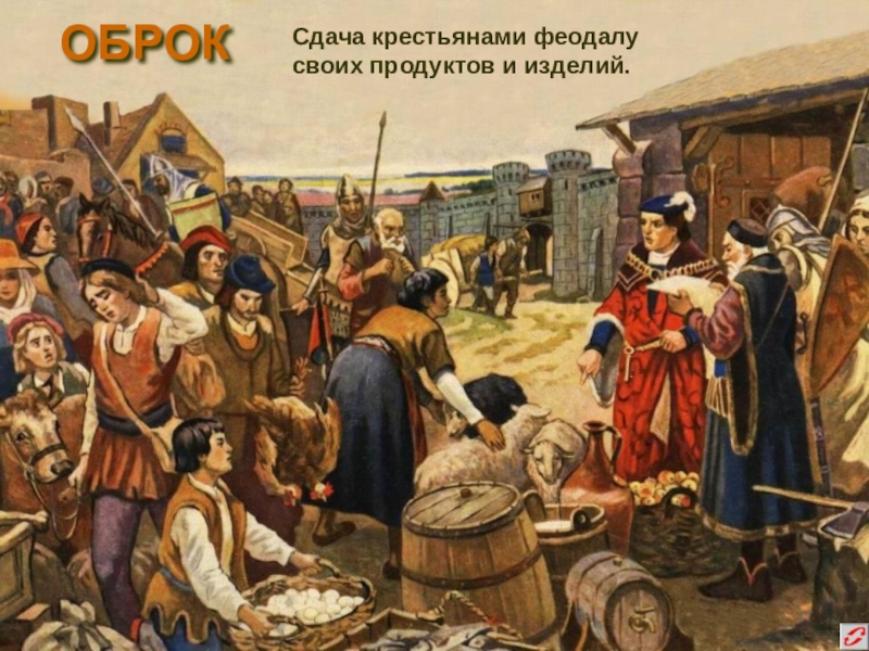 Сдача крестьянами феодалу своих продуктов и изделий.
